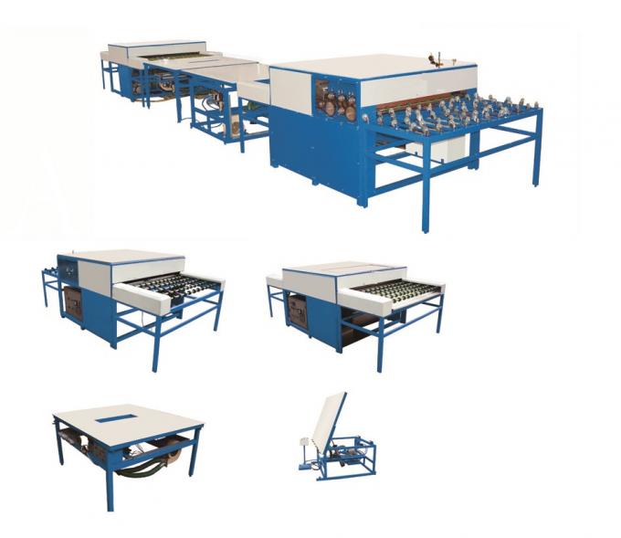 The full insulating glass production line is a set machine includes glass washing and drying machine, hot presser, air strip assembly table,strip rolling over table.